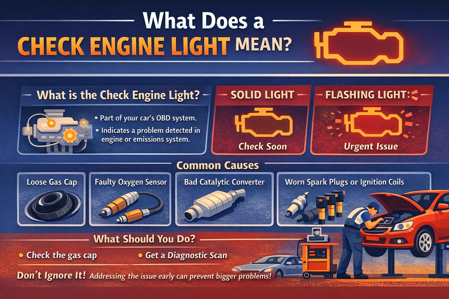 Few things are more unsettling for drivers than seeing the check engine light illuminate on the dashboard. It can appear suddenly while driving or illuminate when you start your car, leaving many drivers wondering whether it signals a minor issue or a serious mechanical problem. Understanding what this warning light means can help you respond appropriately and potentially avoid costly repairs.